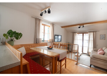Ab Juni 2026: Wenn zwei gemütliche Doppelzimmer zusammenwachsen, entsteht ein Rückzugsort zum Ankommen, Abschalten und Zusammensein. Mit zwei Schlafzimmern, zwei Badezimmern und einer offenen Wohnküche bietet die Alpenrebe viel Raum für Familien, Freunde oder Paare, die sich etwas mehr gönnen wollen. Das Highlight? Die große, sonnige Terrasse mit Bergblick – hier schmeckt der Morgenkaffee einfach besser.
