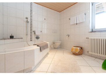 - Badezimmer mit Badewanne/WC, Fön