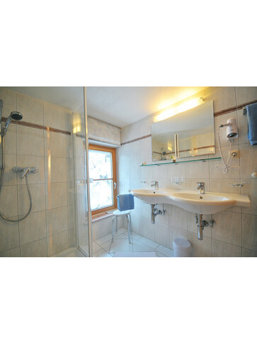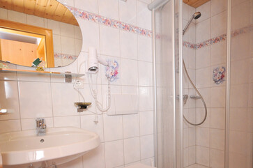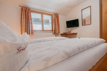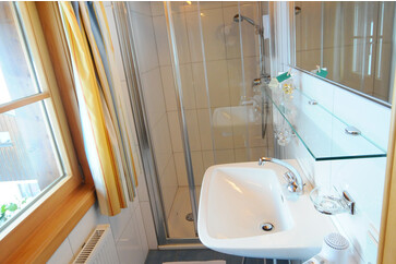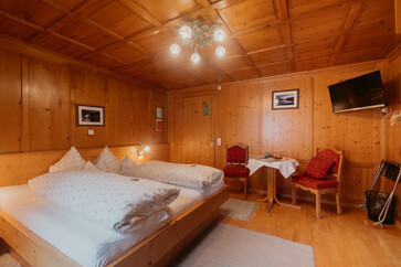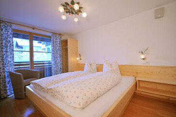 This very cozy double room Schneerose has bright, new furniture, parquet flooring, satellite TV, bathroom with shower/toilet, hair dryer, and a large sunny, south-facing balcony with a wonderful view to the surrounding mountain scenery.