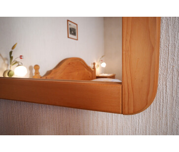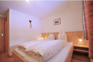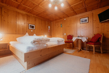 Our double room Steinröschen is one of our ”most comfy“ rooms. It offers cozy, bright furniture, parquet flooring, bathrom with shower/toilet, hair dryer and has a view to the mountain Lobspitze.