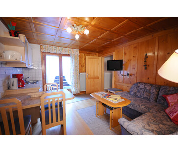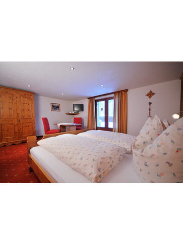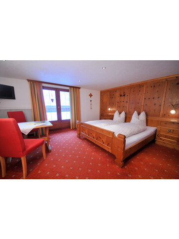 Our Junior Suite Alpenrebe has one bed room with a separate and very cozy living room, which also has a pull-out couch that is suitable for a third adult or two children. Also has satellite TV, bathroom with shower/toilet, hair dryer, parquet flooring, large sun terrace with sun loungers and garden furniture. Wonderful view to the surrounding mountain scenery. The room is very cozy and furnished with a lot of stone pine wood.